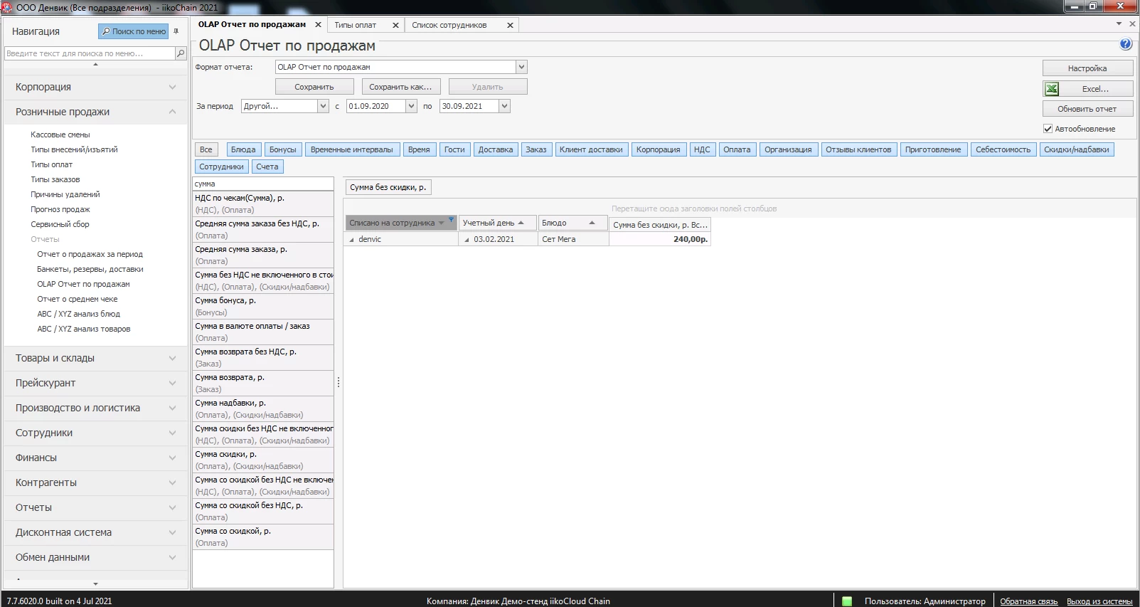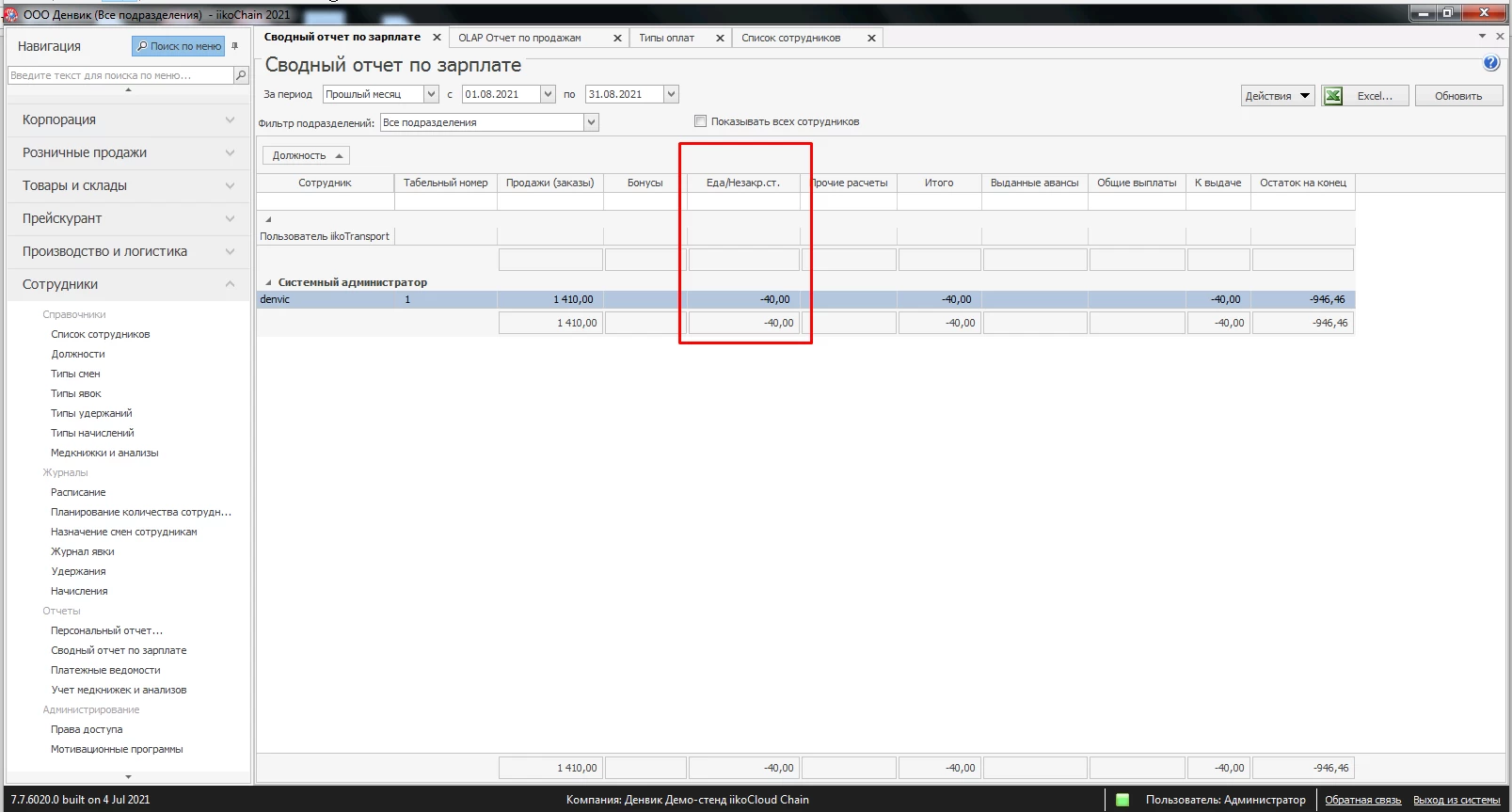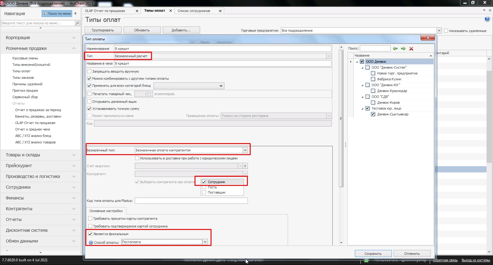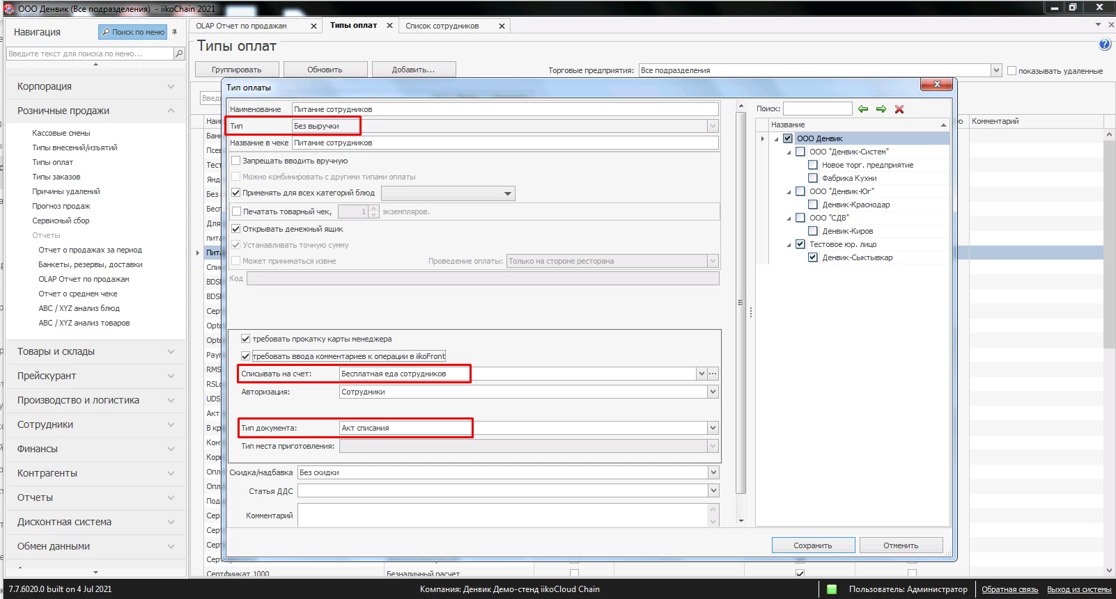 Как настроить питание сотрудников в iiko
